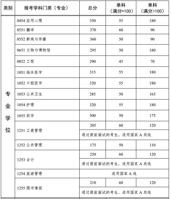 中山大學2018年碩士研究生招生考試復(fù)試基本分數(shù)線