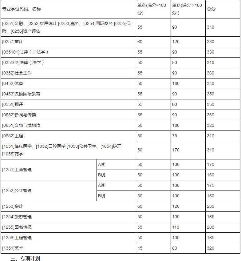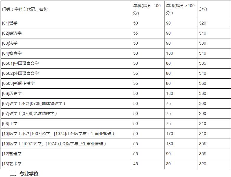 山東大學2019年碩士研究生招生考試考生進入復試的初試成績基本要求