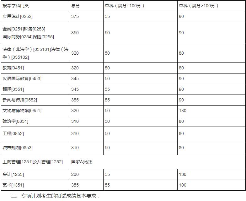1.以上為考生進(jìn)入我校復(fù)試的初試成績基本要求,各學(xué)院可根據(jù)招生計(jì)劃、生源情況、學(xué)科專業(yè)特點(diǎn)等,向上調(diào)整復(fù)試分?jǐn)?shù)線。