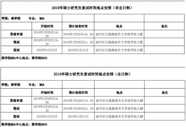 南開大學2019年MBA復試通知院校動態(tài)