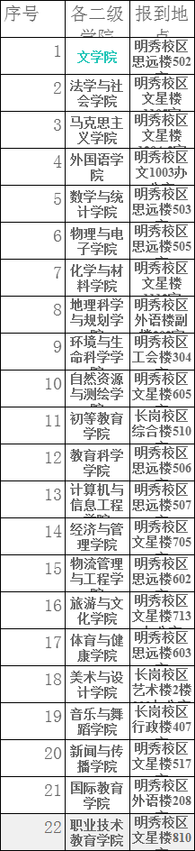 參加復(fù)試的考生于3月28日下午14:30到指定地點(diǎn)報(bào)到、提交資格審查材料。筆試和面試地點(diǎn)見《南寧師范大學(xué)2019全日制碩士研究生復(fù)試安排》(27日見本網(wǎng)公布)。各二級學(xué)院報(bào)到地點(diǎn)如下: