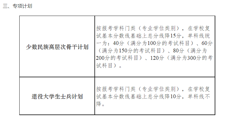 4.納入少數(shù)民族高層次骨干人才計(jì)劃的考生執(zhí)行該計(jì)劃的分?jǐn)?shù)線。
