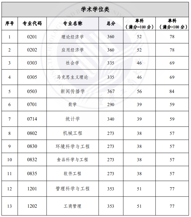 重慶工商大學(xué) 2022 年碩士研究生招生考試考生進(jìn)入復(fù)試的初試成績(jī)基本要求