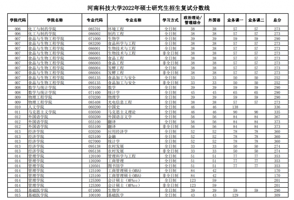 河南科技大學22年MBA復試分數(shù)線院校動態(tài)