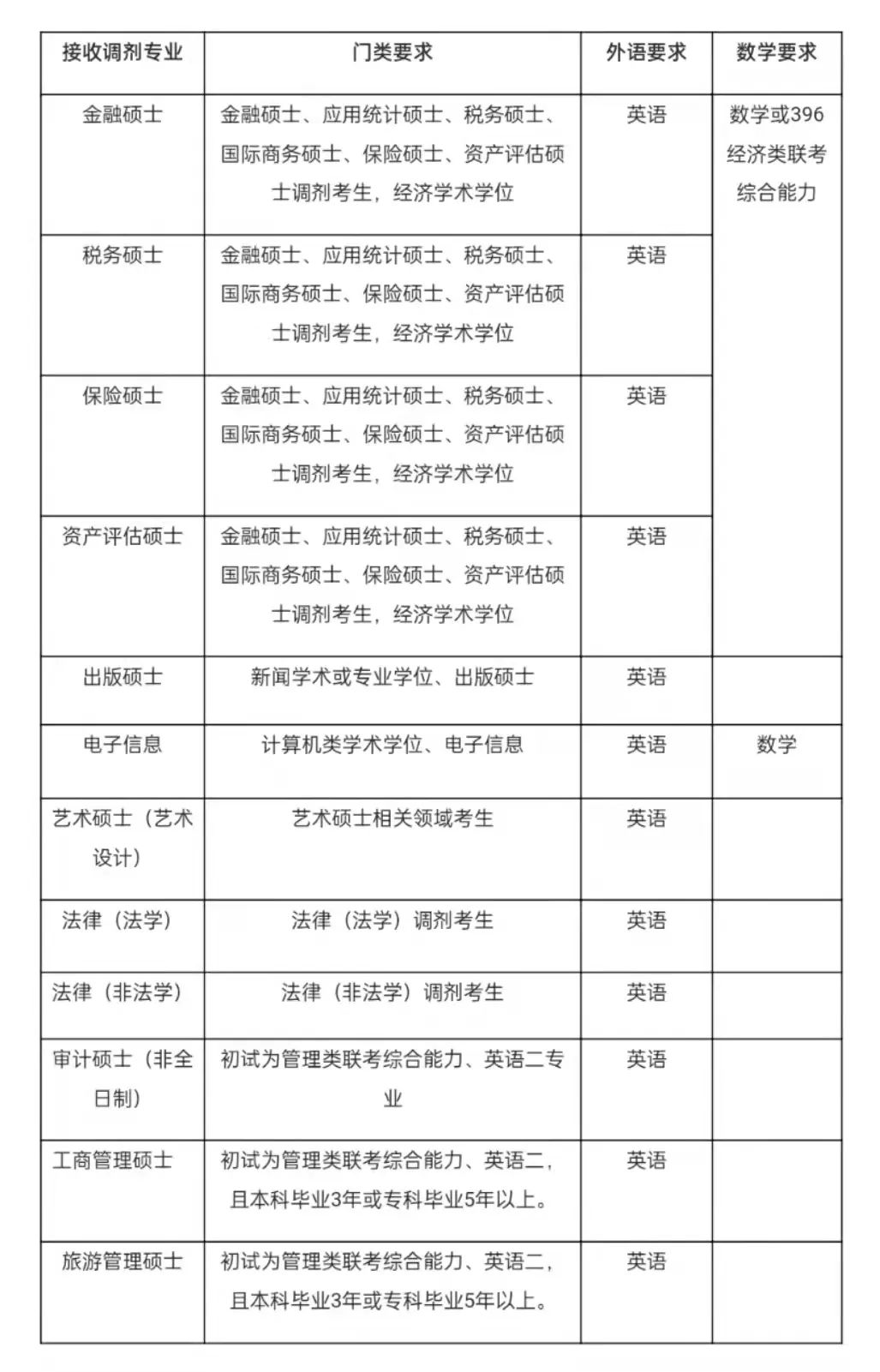 調(diào)劑考生符合報(bào)考專業(yè)的報(bào)考條件,已達(dá)我校復(fù)試資格線。調(diào)入專業(yè)與第一志愿報(bào)考專業(yè)相同或相近,初試科目與調(diào)入專業(yè)初試科目相同或相近,其中統(tǒng)考科目原則上應(yīng)相同。原則上第一志愿報(bào)考專業(yè)學(xué)位專業(yè)的考生不能調(diào)劑到學(xué)術(shù)學(xué)位專業(yè)。我校具體調(diào)劑接收專業(yè)請(qǐng)登錄研招網(wǎng)查看。